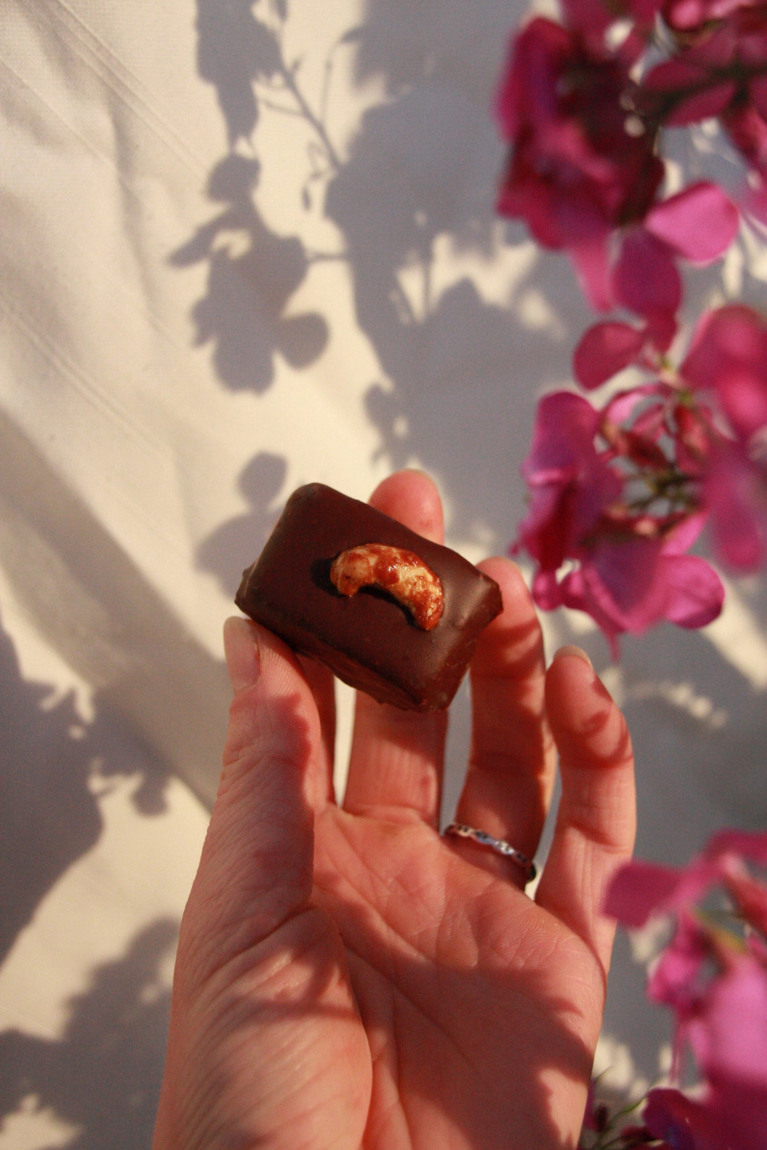 De vreugde die ik ervaar door goed te zorgen voor mezelf en te doen waar ik blij van word zit verweven in mijn chocolade en dat hoop ik door te geven